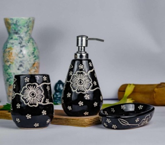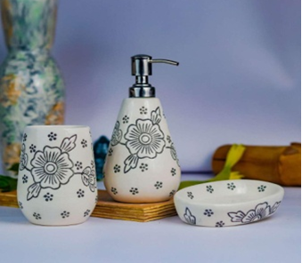 Size: Dispenser - 5"h x 2.5"d(450ml) , Nozzle -5.5 cm , Soap Tray - 5"l x 4"b , Toothbrush Holder - 4.5"h x 2.5"d(350ml)