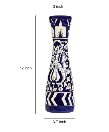 Ceramic Handcrafted & Hand Painted Blue Mughal Wide Mouth Flower Vase