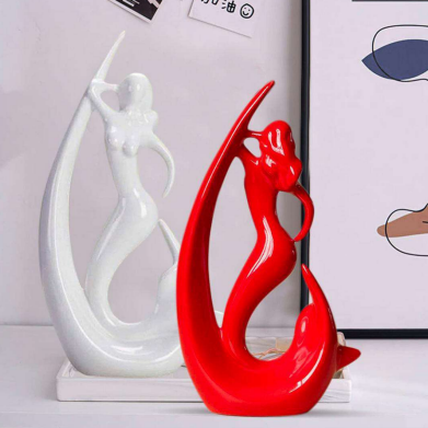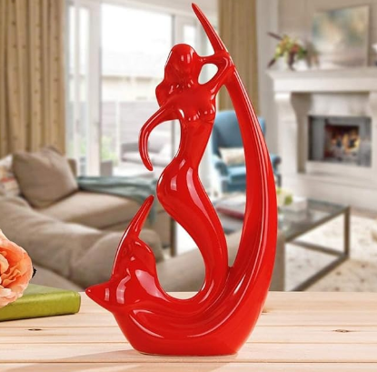Material: High temperature firing ceramics Package Includes: 1 Piece Red Jalpari Ceramic Statue Figurines.