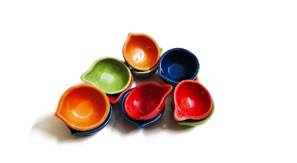 Vibrant Colors: Available in a variety of bright colors, perfect for enhancing your festive decor. Easy to Use & Maintain: Simply fill with oil or ghee and light the wick; easy to clean and reuse for multiple occasions.